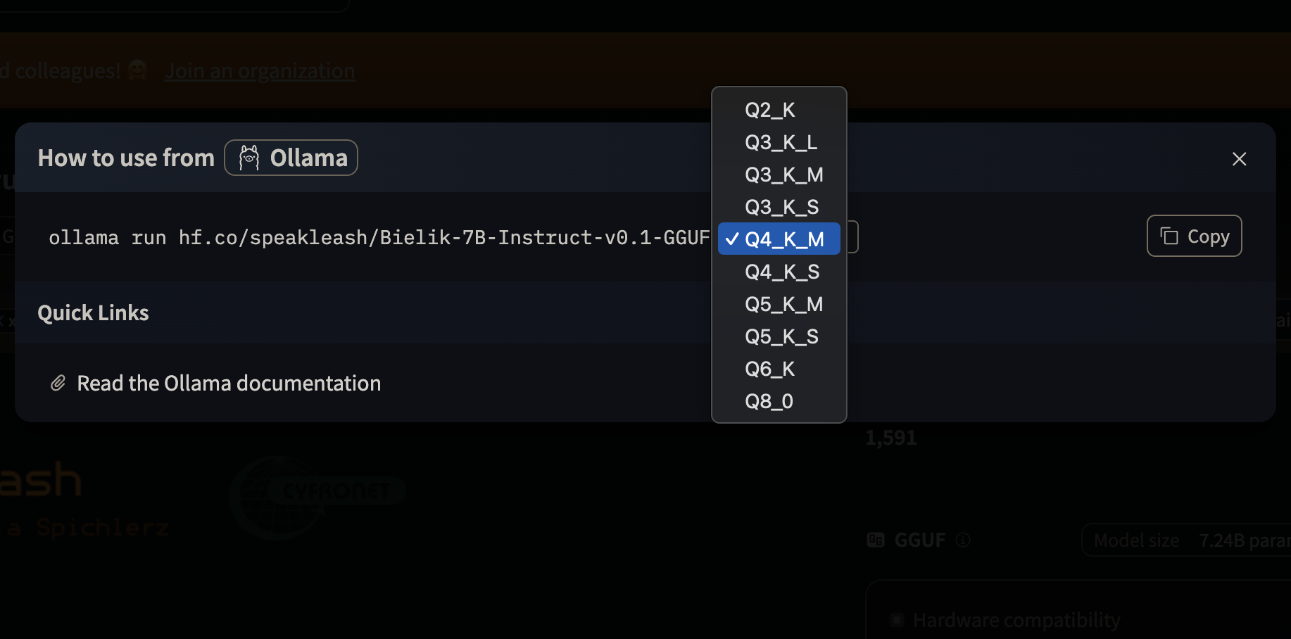 “Interpreter” to “po prostu” 😉 program, który rozpakowuje sobie to “archiwum” i potrafi – w uproszczeniu – przyjąć prompta i nam na niego odpowiedzieć. Lepiej lub gorzej 😅 . Interpretery są przeróżne: vendorzy się swoimi raczej nie chwalą (no shit, Sherlock!) ale powstał już niemały ekosystem rozwiązań OSS, w którym prym wiedzie llama-cpp, a także jego “nakładka” (z prostym agentem) – ollama.